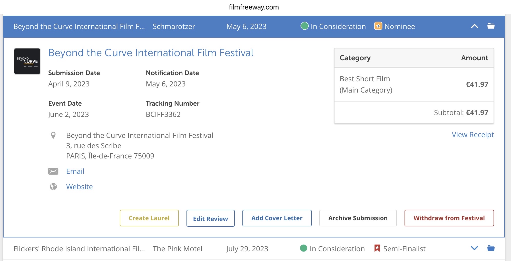 The film was nominated in 2023 at the Beyond the Curve Film Festival.